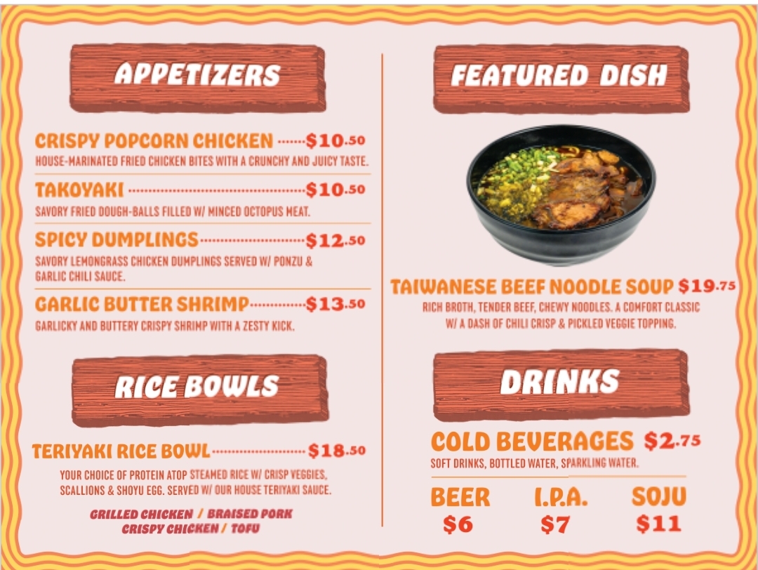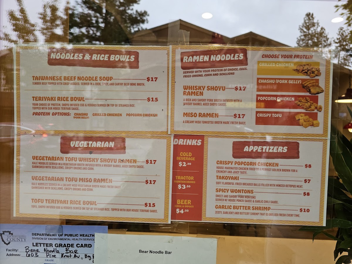The menu at Bear Noodle Bar offers a straightforward yet thoughtfully crafted selection focused on hearty noodle dishes and comforting broths. Whether you’re stopping by for a casual lunch or seeking a warm, satisfying dinner after a day exploring Big Bear Lake, the choices feel approachable and filling without fuss.