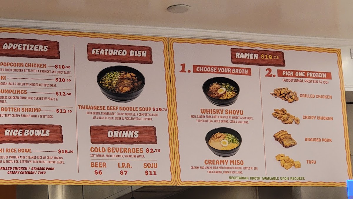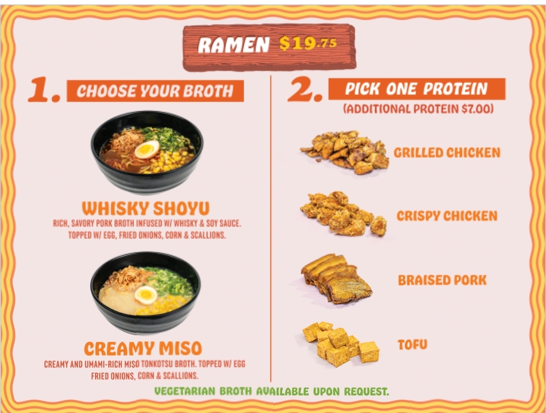Signature bowls like the Miso Ramen with grilled chicken or the whisky-infused Shoyu Ramen invite diners to enjoy a bowl full of layered flavors, paired with fresh toppings like eggs, scallions, and fried onions. For those preferring plant-based options, the vegetarian ramen varieties provide a similarly rich experience with tofu and flavorful broths. Alongside the noodles, small plates such as spicy dumplings or ceviche add a light, bright contrast to the meal.